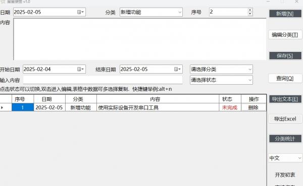 2,通过该工具可以将每天的工作内容保存在SqLite数据库中,在月底时将整个月度的工作内容导出成文本,复制到AI总结成月度汇报.年底时,可以快速统计出每种类型的问题数量,可以在年终总结的PPT中使用.