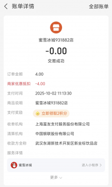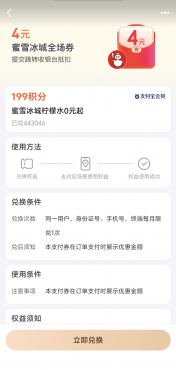 支付宝积分兑蜜雪冰城4元优惠券免责声明: