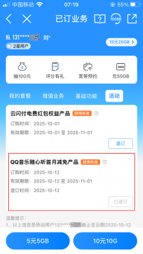 打开中国移动APP--我的--已订业务中找到下面这三项进行退订,退订后状态会变成【已退订】(若已经是【已退订】状态的就不用管)。