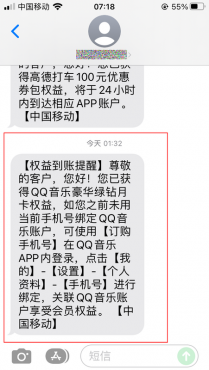 ⑥当你点了⑤中的【立即开通】后,不出意外的话你应该很快会收到中国移动的短信。