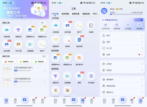 一键扫描,AI加持,生成高清电子扫描件,支持拍照或相册导入文档、图片、自动抠边、自动矫正文档、智能去除杂乱背景、一键生成高清电子件,再也不用买扫描仪了。