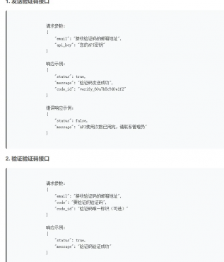 - 数据存储 :使用JSON文件存储用户数据、API密钥、验证码记录和公告信息