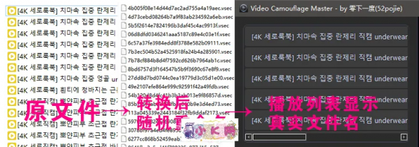 将普通的视频或图片加密为 .vsec 格式并随机命名。每个人生成的vsec是独一无二的,即使别人下载了同样的软件,也无法播放你加密后的视频。