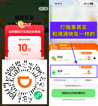 限没打过顺风车的领!打“独享”其实和普通滴滴没啥差别,假期出行正好有用到!