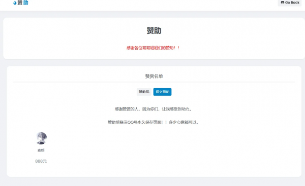 个人赞助提交页面源码即可生效